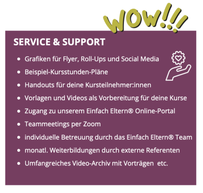 Einfach Eltern® steht fürbindungs- und beziehungsrientierte Inhalte und genau diese sind auch Bestandteil von MiniSigns®. Alles wissenswerte rund um die kognitive und emotionale Entwicklungder Kinder erfahren die Eltern kompakt und gut aufgearbeitet in direktem Zusammenhang mit der jeweiligen Themenstunde.